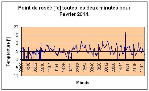 Base de données du mois (par minute) de Février 2014. Pression relative. Température extérieure. Humidité extérieure. Point de rosée. Windchill (température ressenti). Vitesse du vent. Pluie. Retrouver toutes les données du mois au format microsoft excel et laisser libre court à vos envies de statistique, graphique.... Compresser avec 7-zip. Diagrammes de Février 2014. ![]() ![]() ![]() ![]() ![]() ![]() ![]() Température moyenne par semaine. semaine 5 (samedi 1 au dimanche 2) 5,9°c semaine 6 (lundi 3 au dimanche 9) 5°c semaine 7 (lundi 10 au dimanche 16) 5,85°c semaine 8 (lundi 17 au dimanche 23) 5,6°c semaine 9 (lundi 24 au vendredi 28) 5,4°c