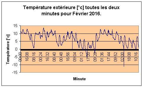 Base de données du mois (par minute) de Février 2016. Pression relative. Température extérieure. Humidité extérieure. Point de rosée. Windchill (température ressenti). Vitesse du vent. Pluie. Retrouver toutes les données du mois au format microsoft excel et laisser libre court à vos envies de statistique, graphique.... Compresser avec 7-zip. Diagrammes de Février 2016. ![]() ![]() ![]() ![]() ![]() ![]() ![]() Température moyenne par semaine. semaine 05 (lundi 01 au dimanche 07) 10,35°c semaine 06 (lundi 08 au dimanche 14) 6,6°c semaine 08 (lundi 22 au dimanche 28) 6,45°c semaine 09 (lundi 29) 2,25°c
