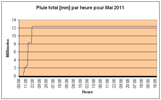Base de données du mois (par heure) de Mai 2011. Pression relative. Température extérieure. Humidité extérieure. Point de rosée. Windchill (température ressenti). Vitesse du vent. Pluie. Retrouver toutes les données du mois au format microsoft excel et laisser libre court à vos envies de statistique, graphique.... Compresser avec 7-zip. Diagrammes de Mai 2011. ![]() ![]() ![]() ![]() ![]() ![]() ![]() Température moyenne par semaine. semaine 17 (dimanche 1) 16,44 °c semaine 18 (lundi 2 au dimanche 8) 17,44 °c semaine20 (lundi 16 au dimanche 22) 17,95 °c semaine 21 (lundi23 au dimanche 29) 20,36 °c semaine 22 (lundi30 au mardi 31) 18,83 °c
