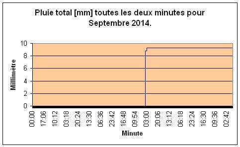 Base de données du mois (par minute) de septembre 2014. Pression relative. Température extérieure. Humidité extérieure. Point de rosée. Windchill (température ressenti). Vitesse du vent. Pluie. Retrouver toutes les données du mois au format microsoft excel et laisser libre court à vos envies de statistique, graphique.... Compresser avec 7-zip. Diagrammes de Septembre 2014. ![]() ![]() ![]() ![]() ![]() ![]() ![]() Température moyenne par semaine. semaine 36 (lundi 01 au dimanche 07) 18,65°c semaine 37 (lundi 08 au dimanche 14) 19,75°c semaine 38 (lundi 15 au dimanche 21) 17,6°c semaine 39 (lundi 22 au dimanche 28) 17,35°c semaine 40 (lundi 29 au mardi 30) 17,25°c